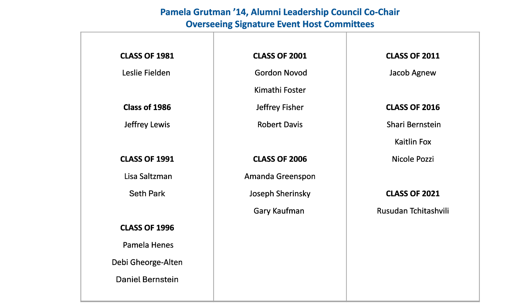 Making a gift in recognition of your reunion is a meaningful way for Cardozo alumni to celebrate their time at the law school while shaping its future. All contributions will be counted towards your class gift, and classes that reach their giving or participation goal will be honored with a champagne toast at Reunion!