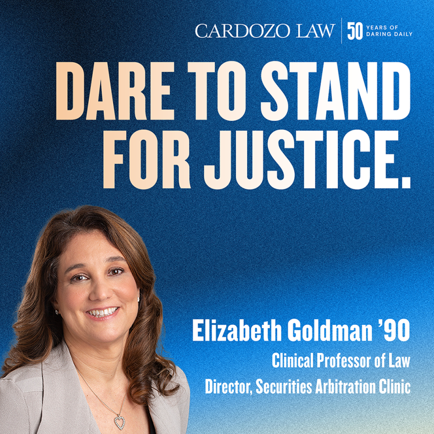 Director of the Securities Arbitration Clinic and a full-time faculty member in Cardozo’s Kukin Program for Conflict Resolution, Liz Goldman prepares students to advocate with skill and integrity while expanding access to justice. Before joining Cardozo’s full-time faculty, Professor Goldman served as senior counsel in the Division of Enforcement at the U.S. Securities and Exchange Commission, where she prosecuted significant federal securities law violations and received multiple honors for excellence and public service. Through her teaching, mentorship, and commitment to ethical advocacy, she continues to inspire the next generation of lawyers to stand firmly for justice.