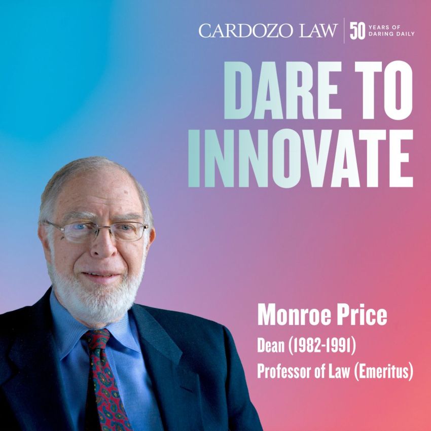 Dean Monroe Price dared to innovate in legal education. Serving as dean of Cardozo School of Law from 1982–1991 and later as professor emeritus, his visionary leadership helped shape Cardozo’s forward-thinking approach to the law — from building academic strength to fostering a culture of creativity and inquiry. His impact continues to influence the way we teach, learn, and engage the law today.