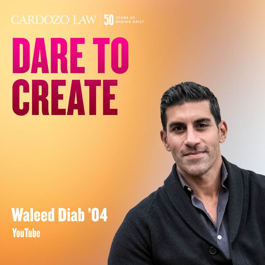 We recognize Cardozo alumnus Waleed Diab' 04, who dares to create. As YouTube’s Global Head of Recorded Music Business Development, he is shaping the legal future of music and digital media. In this role, he is responsible for negotiating YouTube's global music licensing agreements with record labels and tackling novel legal issues such as how to enable and monetize Gen AI music and media on the world's largest video platform.