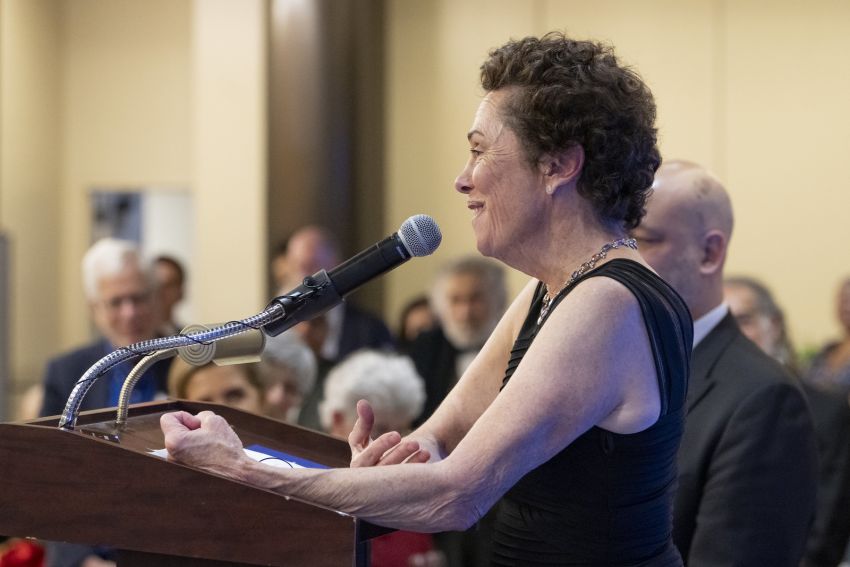 Dean Melanie Leslie, spoke about Love’s vision and perseverance in building the Kukin Program. “Lela Love created this program through a sheer force of will, and she never stopped,” Dean Leslie remarked. “She believed in her vision, she pursued it relentlessly every day at Cardozo, and the results are visible tonight in the tremendous outpouring of support from our alumni.”